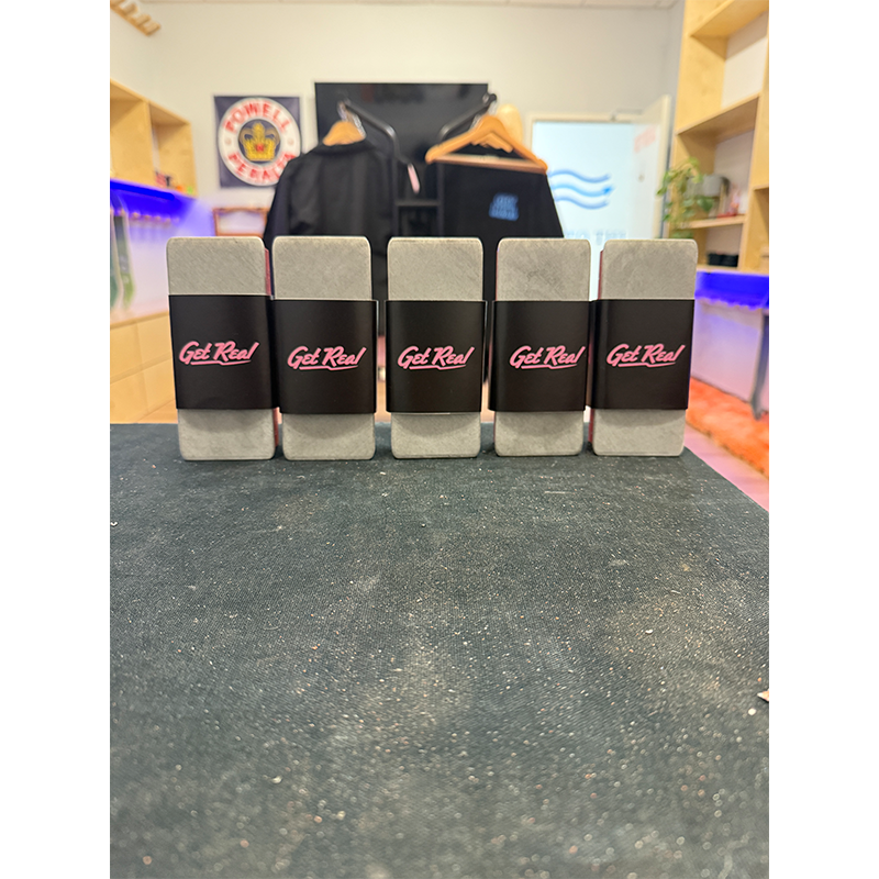 You will receive a Get Real Finger Board, 3D printed Ledge/Deck Case, Tool, Grip Tape, and Sticker.